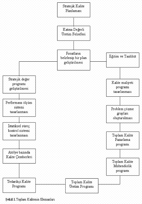 “Toplam Kalite Kontrol” müşterilerin memnunluk duyarak satın alacakları ürün ve hizmetlerin geliştirilmesi, tasarımı, üretimi pazarlanması ve satış sonrası hizmetinin maliyet düşürülerek yapılmasıdır. Bu hedeflere ulaşmak için bir kuruluşun bütün kısımları beraberce çalışmalıdır. Kuruluşun bütün kısımları işbirliğini kolaylaştıracak sistemleri kurmak ve standartları hazırlamak ve uygulamak için gayret göstermelidir. Bu ancak; istatistik, teknik metotlar, standart ve kurallar, otomatik kontrol, ölçü kontrolü, yöneylem araştırmaları , endüstri mühendisliği, pazar araştırması gibi teknik bilgilerin tam olarak kullanılması ile oluşabilir.