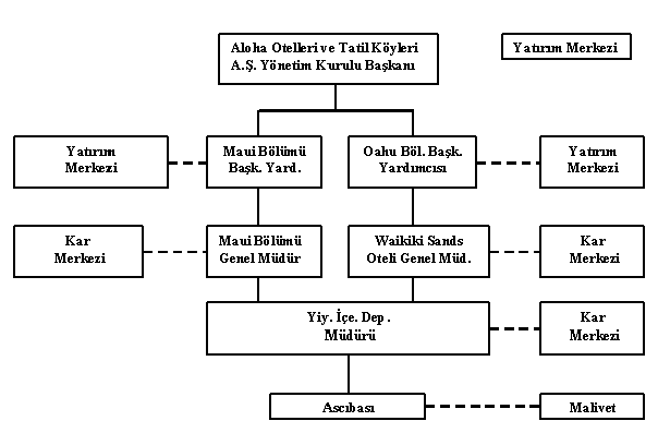Daha önce şekil 1’deki organizasyon şemasından da görüldüğü üzere, Aloha Otelleri ve Tatil Köyleri hiyerarşik bir sıra izler. Bu, her bir alt bölüm yöneticisinin faaliyetlerini hiyerarşik bir sıra takip ederek müdür, genel müdür ve başkana raporlaması anlamına gelir. Bu tür bir örgütte, başarı raporları da hiyerarşik özellik taşır, çünkü her bir alt bölümün başarısı gelecek daha üst düzeydeki bölümün (veya bölüm yöneticisinin) başarısının bir kısmını teşkil eder. Örneğin, Waikiki Sands Oteli’nin mutfak alt bölümündeki maliyet başarısı otelin yiyecek-içecek departmanının kar başarısının bir kısmını oluşturur.