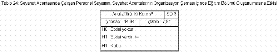 Seyahat acentalarında eğitim işlerini organize eden profesyonel bir eğitim bölümünün olmasında işletmede çalışan personel sayısının etkili olduğu görülmektedir. 1-5 veya 6-20 arasında personel çalışan seyahat acentalarında eğitim etkinliği düzenleyecek sayıda yönetici bulunmamakta ve eğitim etkinlikleri seyahat acentaları için maliyetli olmaktadır. Seyahat acentası yöneticileri işletmede eğitim etkinliği düzenlemenin maliyetli olmasından dolayı işletme dışında yapılan eğitim etkinliklerine katılmayı tercih etmektedir. Ancak, 21-50 arası ve 50’nin üzerinde personel çalıştıran işletmelerde her departmanın müdürlerü bulunmakta ve eğitime tabi tutulacak yönetici sayısı eğitim etkinlikleri için yeterli görülmektedir
