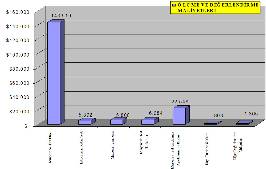 - Muayene  ve Test Etme maliyeti 143.519$ ile ölçme ve değerlendirme maliyetinin %77.4‘ünü oluşturmaktadır.