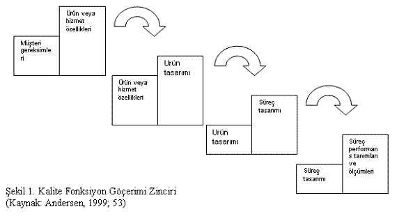 Kalite fonksiyon göçerimi, uygulamaya dayanan bir yöntem bilimidir(8): “Müşteri gereksinimleri ürün yada servis özelliklerine dönüştürülür. Kalite fonksiyon göçerimi, müşteri gereksinimlerini ürün tasarım ve geliştirme, üretim,dağıtım, satış ve servise kadar iletebilen bir sistemdir”.