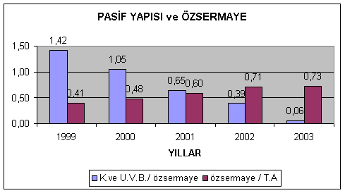 1999 ve 2000 yıllarında işletmenin finansmanında yabancı kaynak kullanıldığını gösteriyor. Bu işletmeyi faiz yükü altına sokabilir. 2001 ve sonrası yıllarda işletme finansmanında özkaynak kullanılmıştır. Bu faiz ve uzun vadeli borçların ödenmeme riskini azaltmıştır. Özkaynakların fazla olması her zaman iyi politikadır ancak genellikle işletmenin bilanço aktif değerinde kademeli olarak azalma gerçekleşmiş 1999 ve 2003 yılına göre işletme 1,77 oranında küçülmüştür. 2002 yılında kısa vadeli borçların oranı hızla gerilemiştir. 2003 yılında güçlü özsermayeleri mevcuttur. Kısa vadeli borçlardaki artış ticari borçlardan kaynaklanırken, uzun vadeli borçlardaki artış kıdem tazminatı karşılıklarından gerçekleşmiştir.