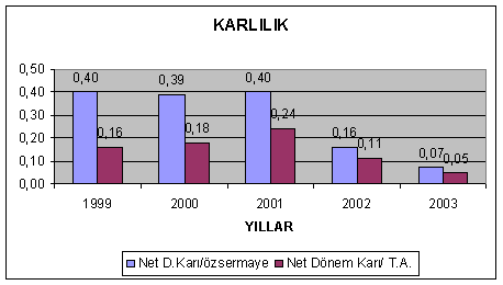 Özsermaye içinde net dönem karına bakıldığında 1999, 2000 ve 2001 yıllarında bu oranın yüksek çıkması satışların karlılığının ve özsermaye devir hızının arttığını gösterir. Satışların karlılığı artması maliyet ve giderlerinin azaldığı ve net satışlar rakamının artması ile gerçekleşir. 2002 yılında oran ideal seviyededir. 2003 yılında ise özkaynak karlılığı düşmüş bunu satış karlılığını düşmesi, net satışların düşmesiyle maliyetlerin artması sonucu özkaynak karlılığı düşmüştür.