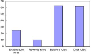 It is observed that the countries utilise fiscal rules more intensively than the decade before in late 2000s. While in the early 1990s countries had on average 1½ numerical rules, this number had grown to almost 2½ in 2009 (Cottarelli, 2009:9).